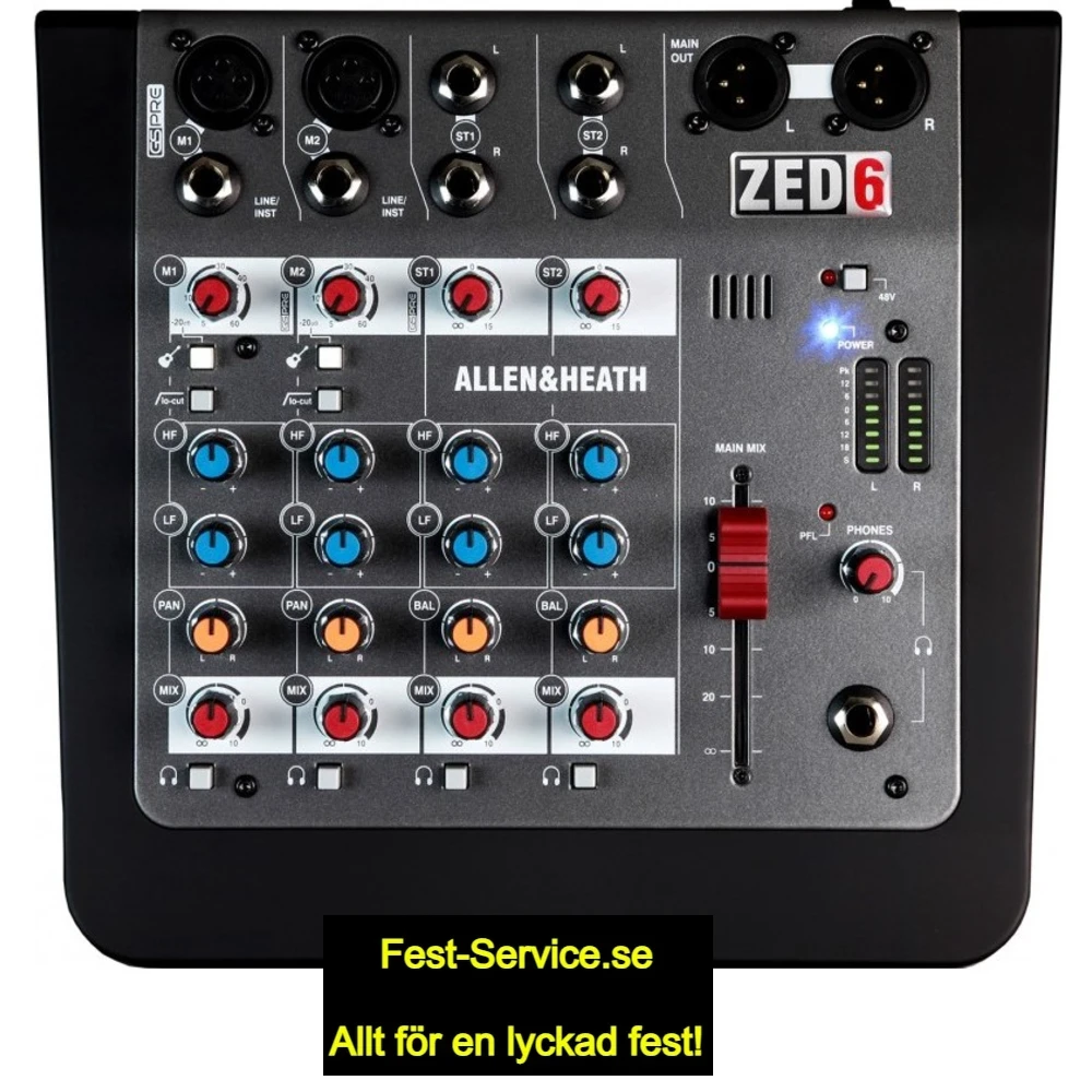 Bra och enkel mixer med 2 XLR ingångar för tex mikrofoner, 2 lineingångar för mikrofon eller instrument, samt 2 stereo-lineingångar