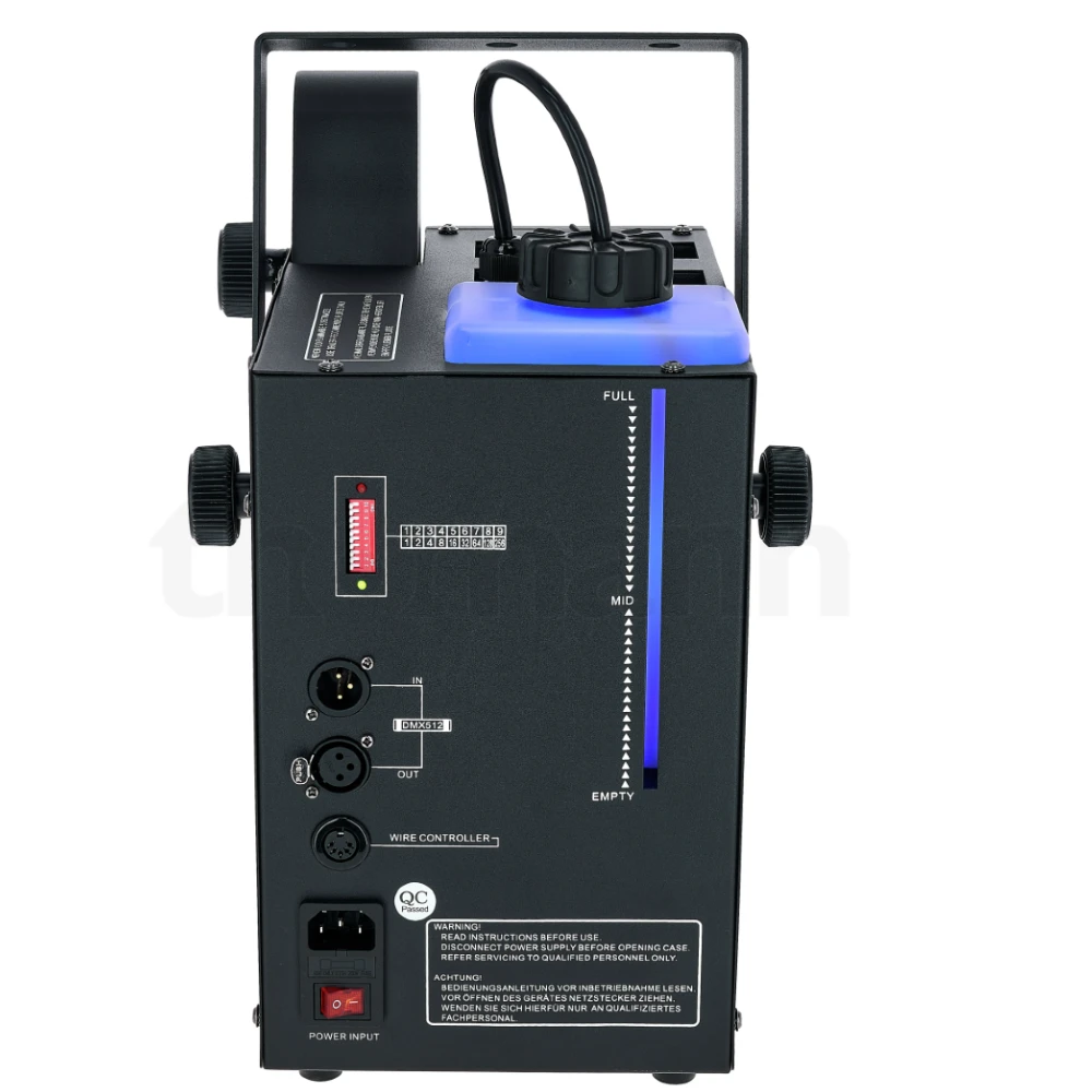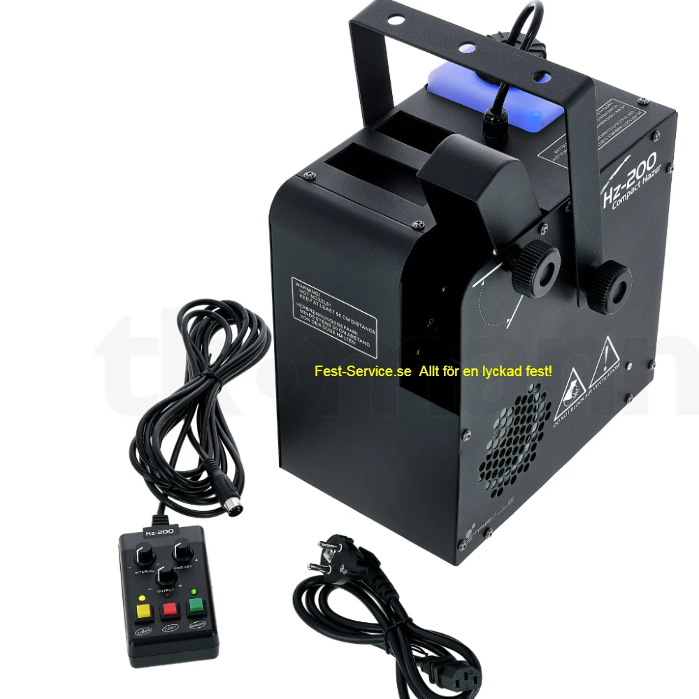 Kraftig modell som ger en fin dimma (vilket oftast är mycket bättre än vanlig rök när t ex laser ska användas), sk Hazer, perfekt för att framhäva ljuseffekter och laserstrålar. Passar lokaler upp till ca 300 kvm, effekt 700W. Maskinen kan styras manuellt via fjärrkontroll eller ställas in på intervall.