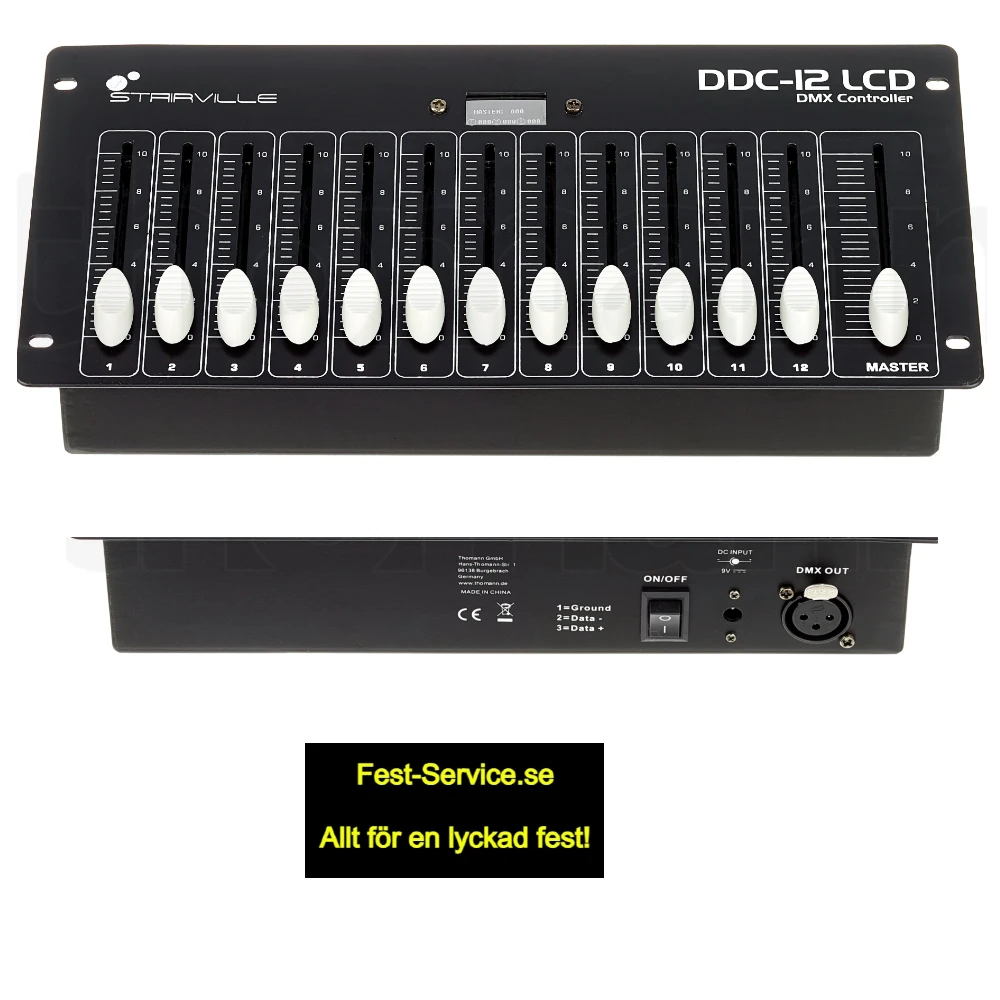 12 DMX-kanaler + masterfader