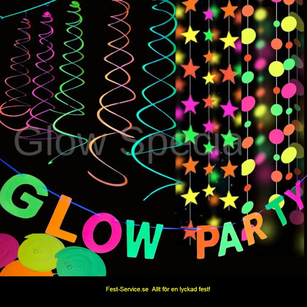 Med en UV-lampa (sk Black-gun eller Blacklight) skapar du häftiga effekter på festen, vita kläder och t ex skor lyser upp med ett häftigt blåaktigt sken, bäst effekt blir det med uv-färger.
